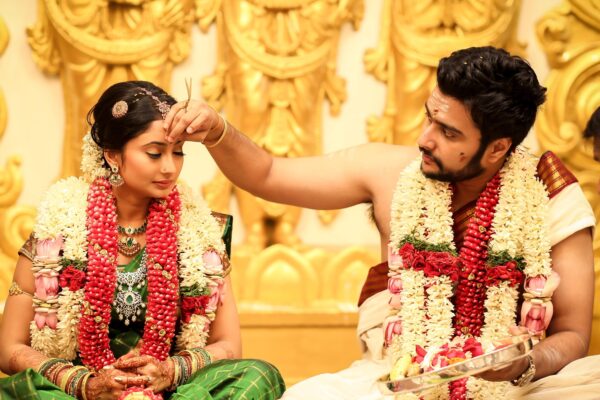 The first ceremony after the fixing of the marriage, the ‘Nischayam’ ceremony marks the official engagement where the two families often exchange the matched horoscopes, as well as gifts. This is followed by the ‘Mothiram Maattal,’ which is the ring ceremony.